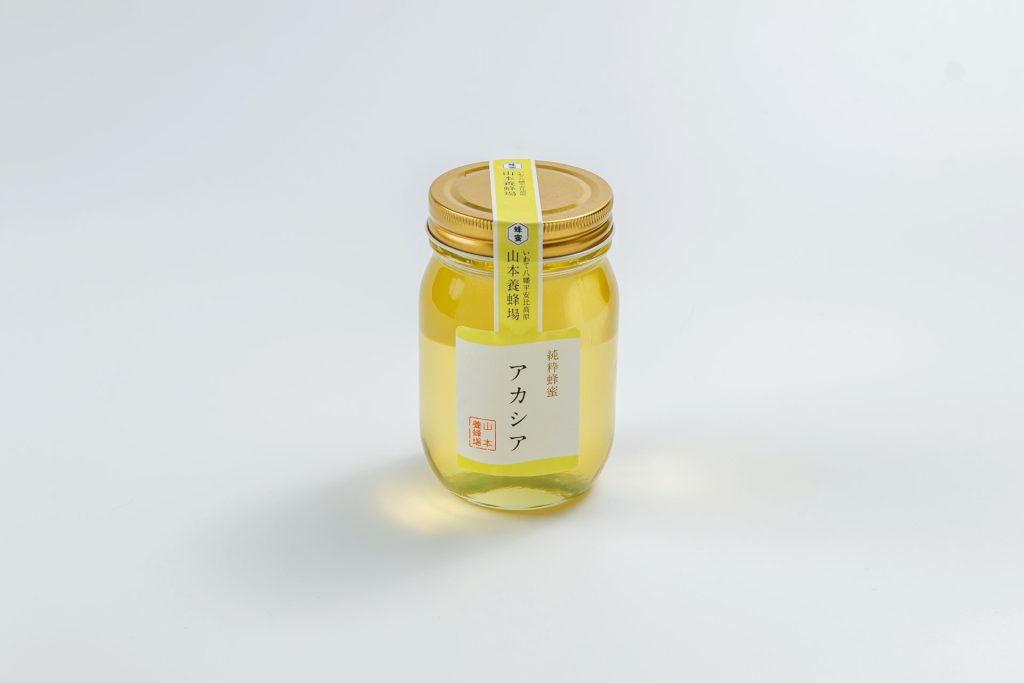 山本養蜂場の「純粋蜂蜜・アカシア」は自然豊かな八幡平周辺で採蜜され、高い透明度と華やかな香り、優しい甘さが特長です。